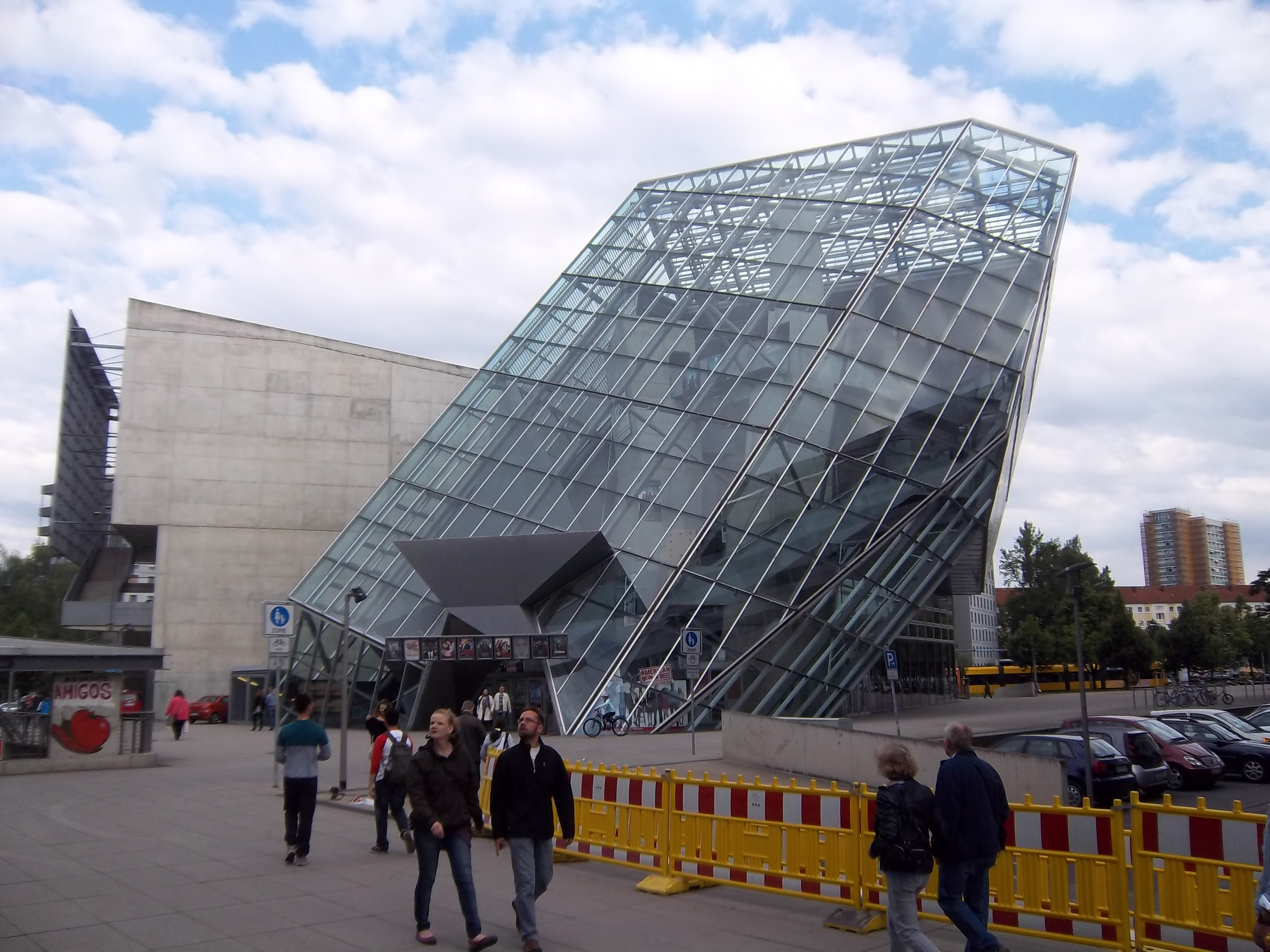 Also wieder zurück auf die andere Seite der Hofkirche, wo sich der Zwinger und die Semperoper befinden, die auch noch auf dem Programm stand. Auch niemand. Nur einer der Dozenten hatte ein Handy dabei, ich rief an, er ging nicht ran. Maja war jetzt wirklich panisch, da sie kein Geld für eine etwaige Übernachtung dabei hatte und Angst hatte, den Schein für das Seminar nicht zu bekommen. Da erreichte ich aber den Dozenten – sie waren auf der vermuteten Terrasse, eben nur ein ganzes Stück weiter. Nach dieser Aufregung gab es ein Referat an der Semperoper, untermalt von einem Schlagerfuzzi, der „Rette sich, wer kann!“ (was ich liebend gerne getan hätte!) auf der nebenan aufgebauten Bühne sang. Die Vortragende musste fast brüllen, um sich verständlich zu machen. Die Exkursion endete mit einem Ausflug zum Kulturpalast, einem DDR-Bau, und dem spektakulär aussehenden Ufa-Kristallkino.