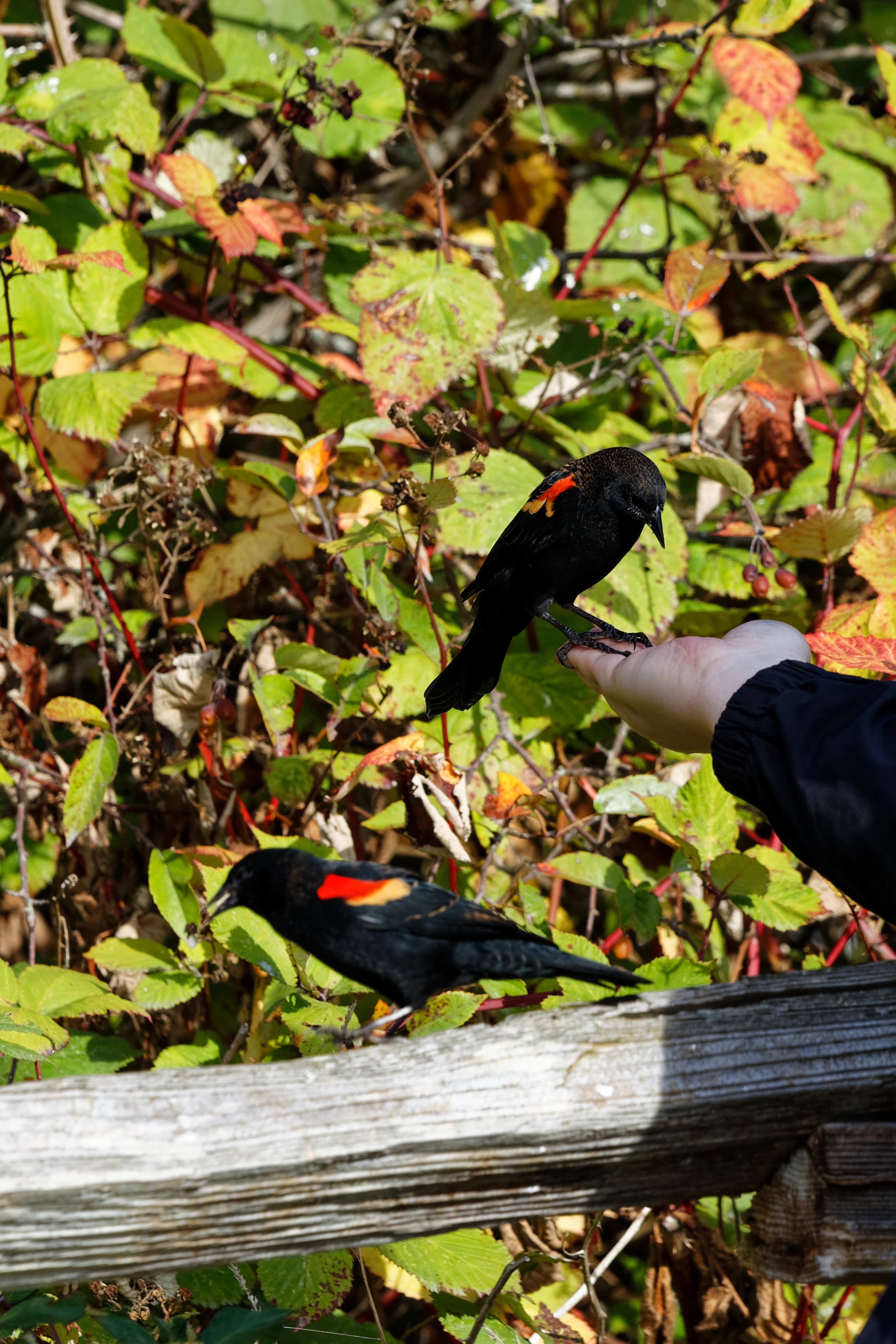 Die Leute legten immer wieder Futter auf ihre Hände, um Vögel anzulocken. Dieses Verhalten nahm zum Teil groteske Züge an: Wir sahen Gruppen von Menschen, die schweigend, willkürlich verteilt, auf den Wegen standen, einen Arm mit Futter hochgestreckt. Es sah aus, als sei da eine Sekte am Werk, die merkwürdige Rituale pflegt. Dass man die Vögel gerade nicht anfassen soll, interessiert natürlich niemanden – Menschen verteilen gerne fröhlich Viren, das habe ich mittlerweile gelernt.